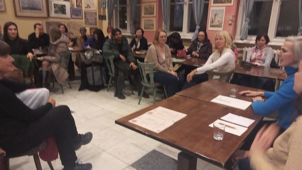 So eine Veranstaltung gibt es nicht alle Tage: Bei einer Lesung am 9. Mai zum Thema "Heimat suchen, Heimat finden" war das Café in der Villa Mittelhof in Zehlendorf bis auf den letzten Platz besetzt.