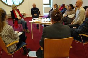 Gleich zu Beginn ihrer Tätigkeit nutzte Gabriele Rosenstreich die Gelegenheit, sich beim monatlichen Runden Tisch Flüchtlingsarbeit des Willkommensbündnisses den dort regelmäßig zusammenkommenden hauptamtlichen Akteuren vorzustellen, Kontakte zu knüpfen uns erste Anregungen für das gemeinsame Engagement aufzunehmen.